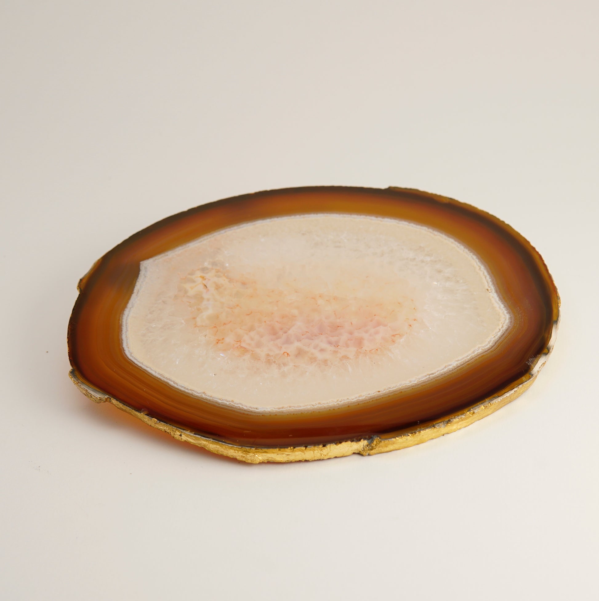 Chapa de Ágata Caramelo – elegância natural com acabamento em folha de ouro