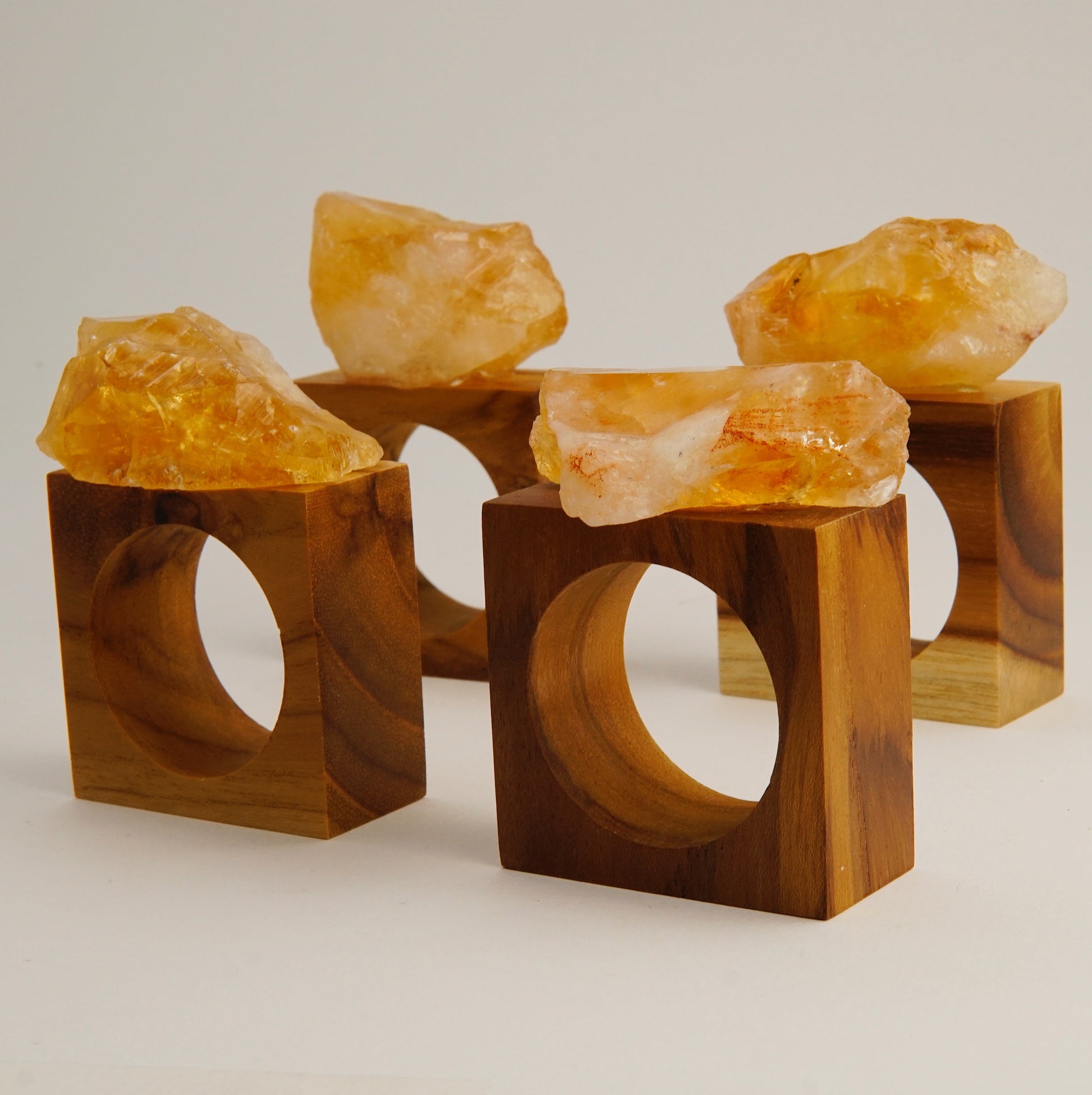 Jogo de porta guardanapos - anel quadrado com aplicação de pedra natural citrino - 4 peças