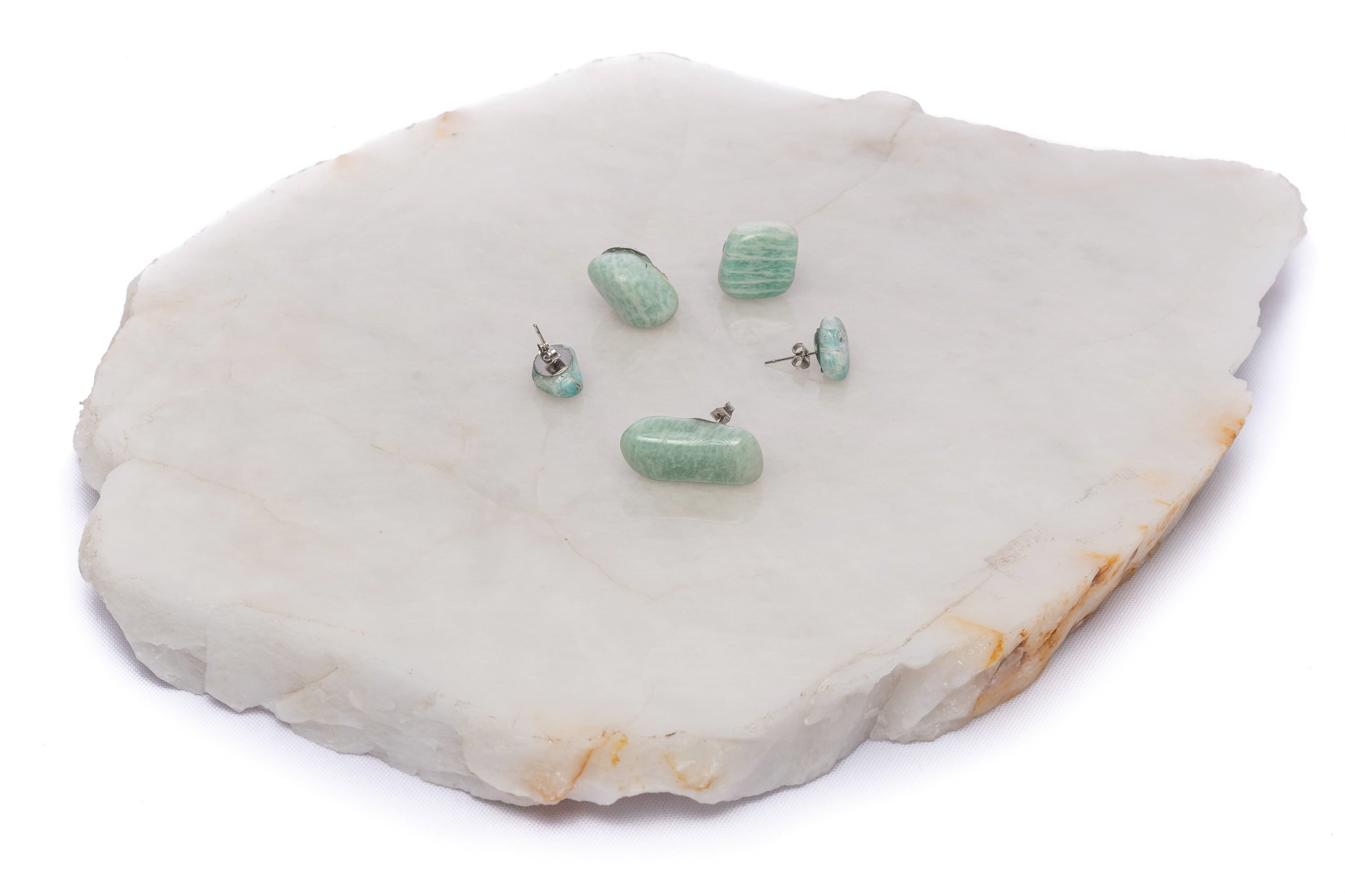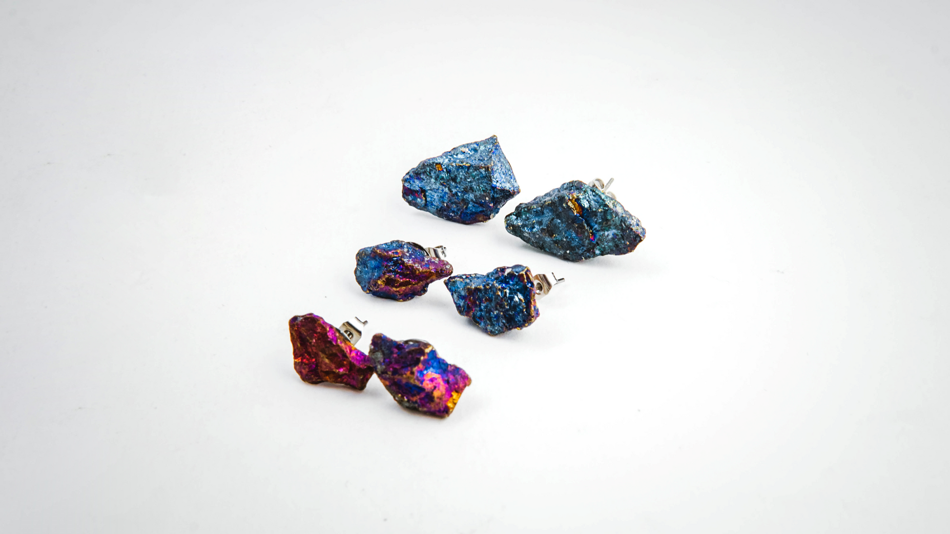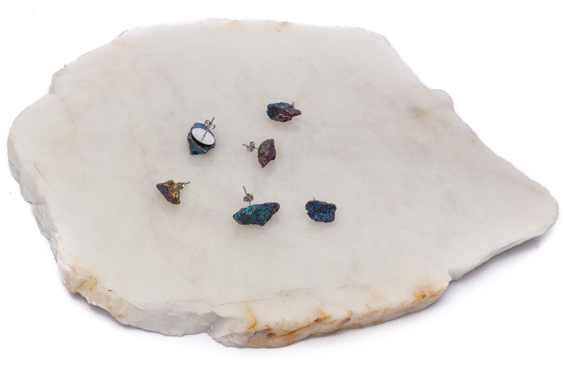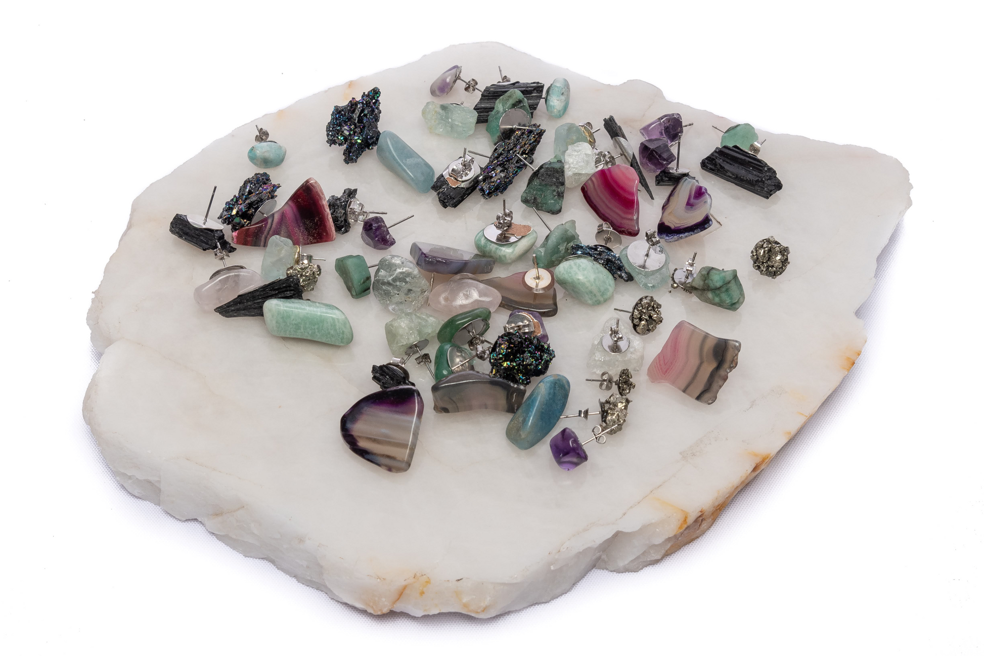 Um par de brincos feito em liga metálica e pedra natural será enviado sem a prévia escolha do cliente.