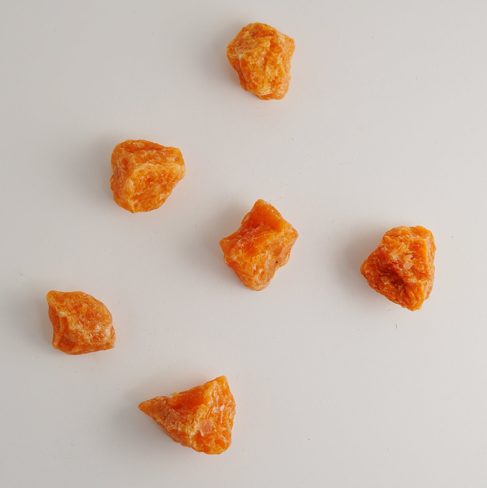 Considerada purificadora e amplificadora de energias, a calcita laranja bruta tem aproximadamente 2 a 4cm.