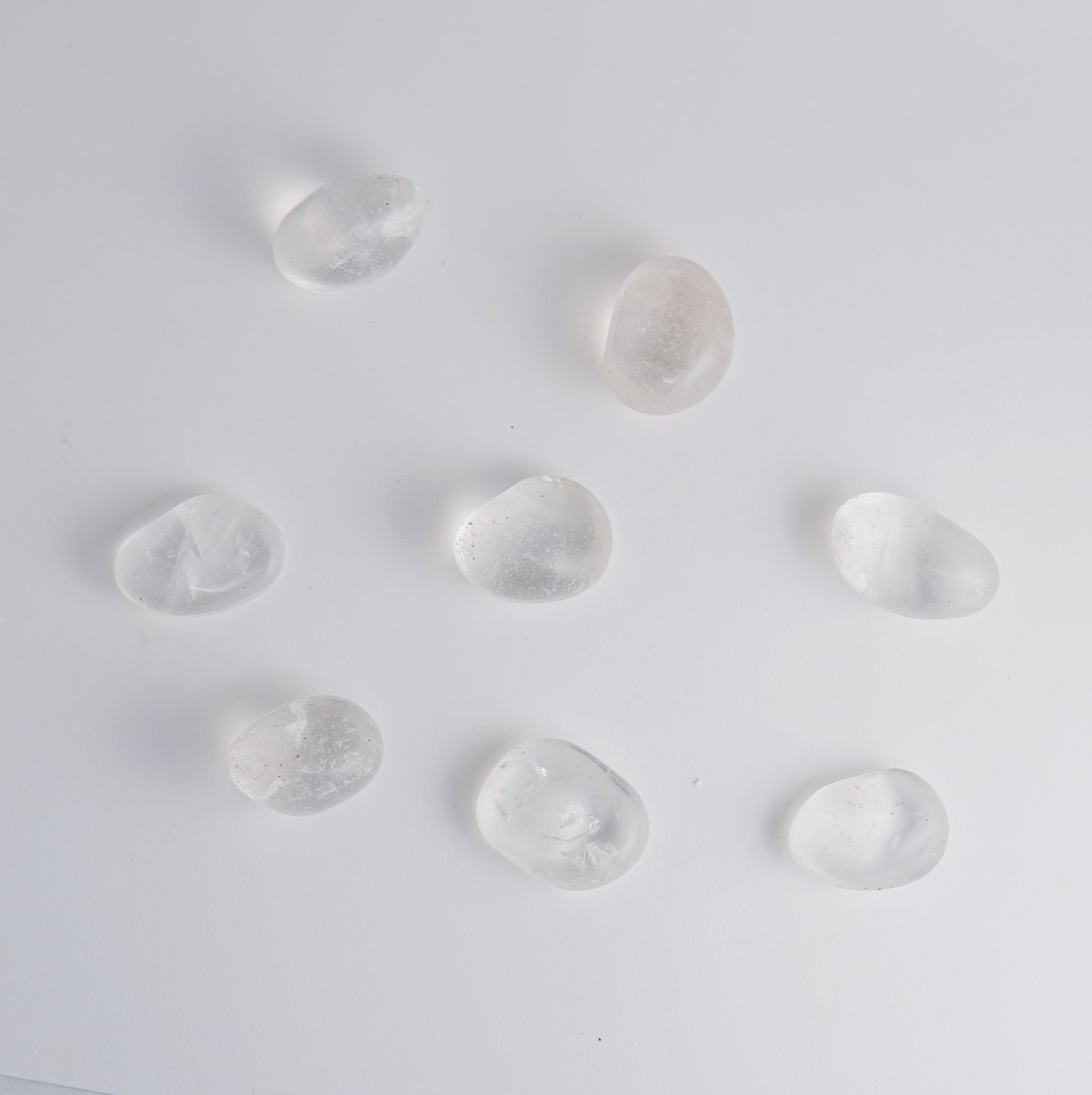 Conhecido como purificador de energias, este cristal de quartzo é rolado e mede aproximadamente 2 a 4 cm.