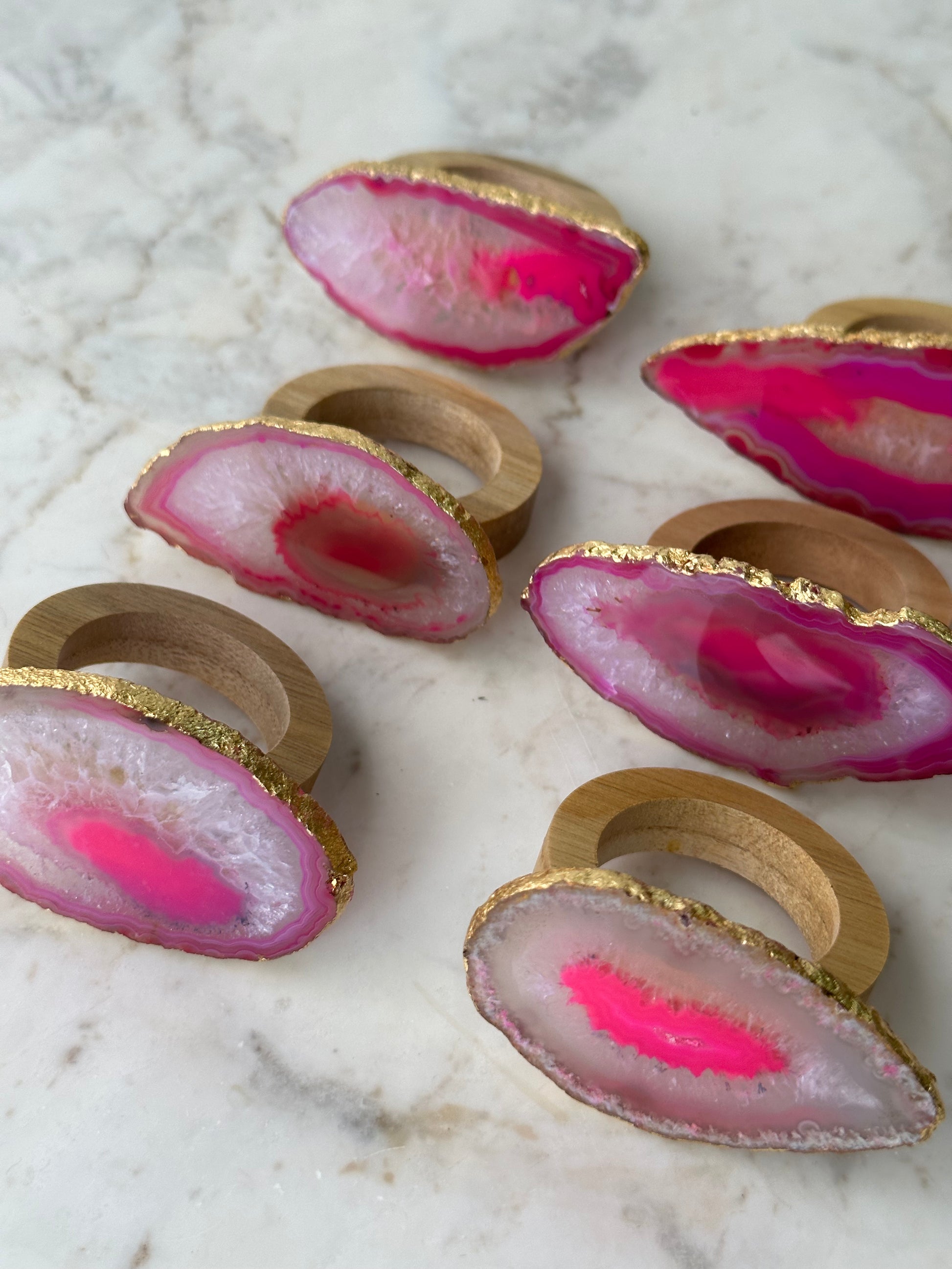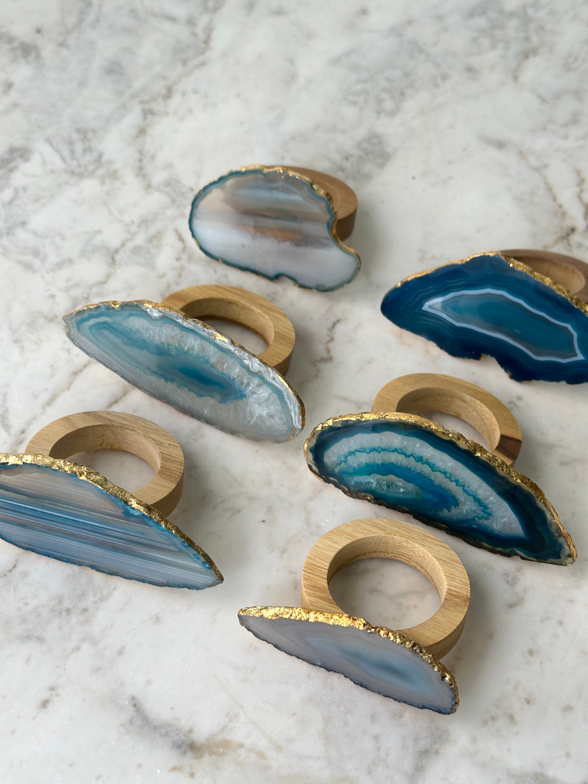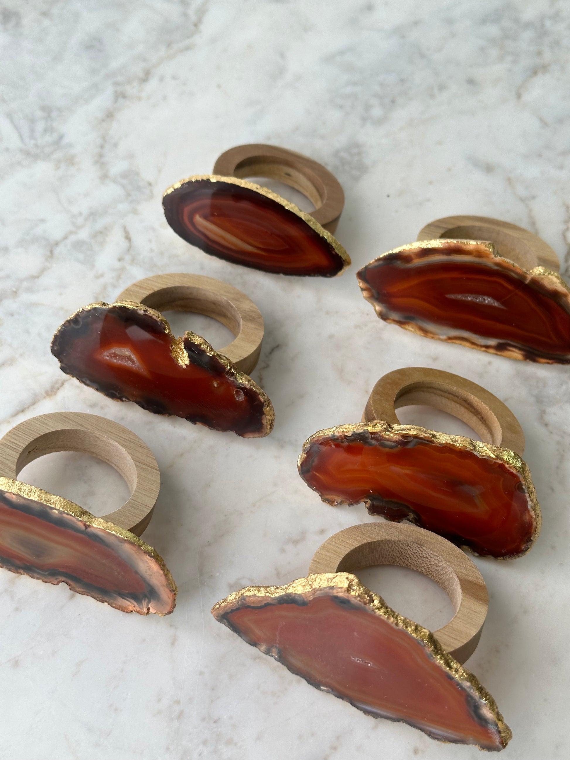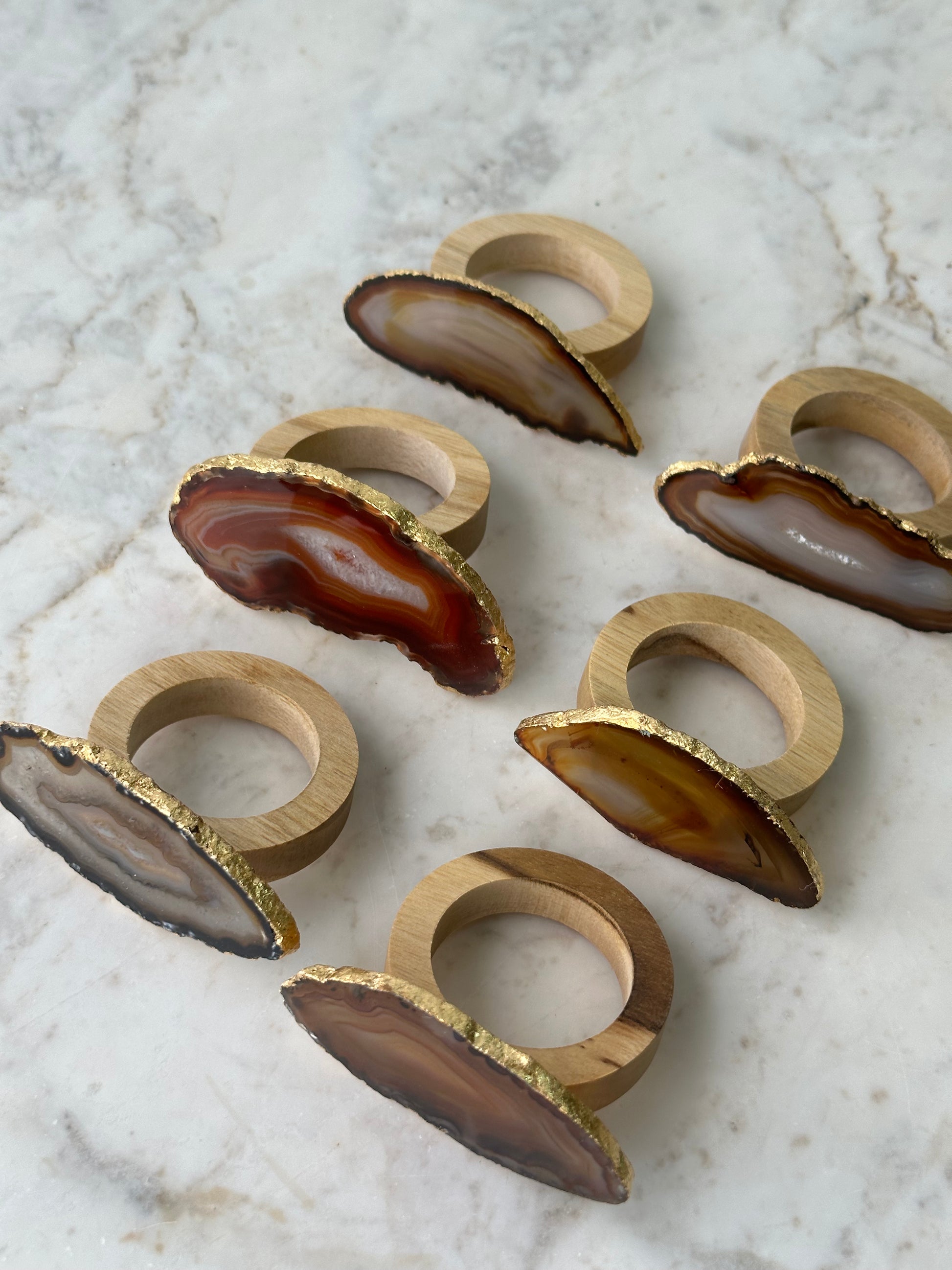 6 anéis para guardanapos com ágata, escolher cor, e a o acabamento é em folha de ouro