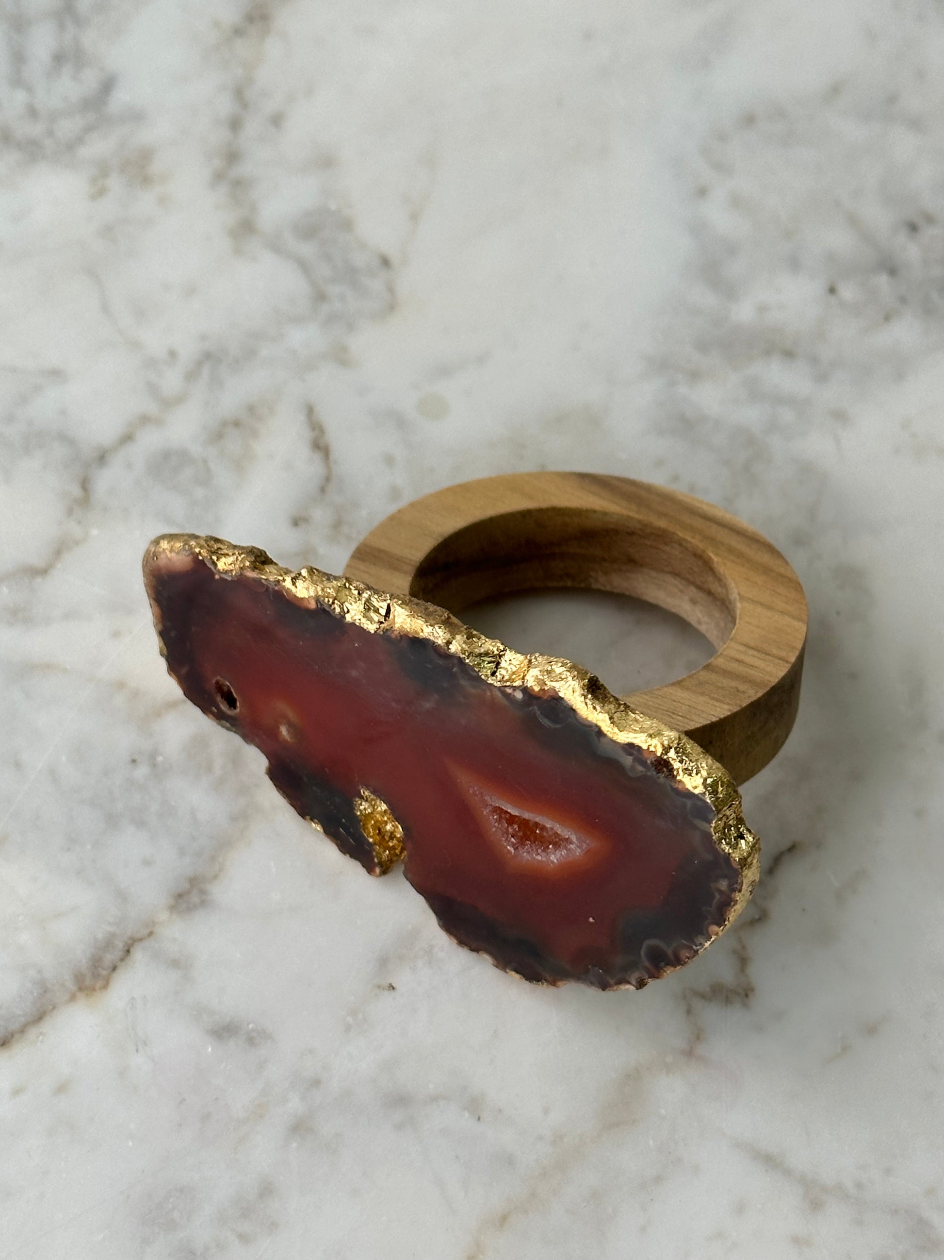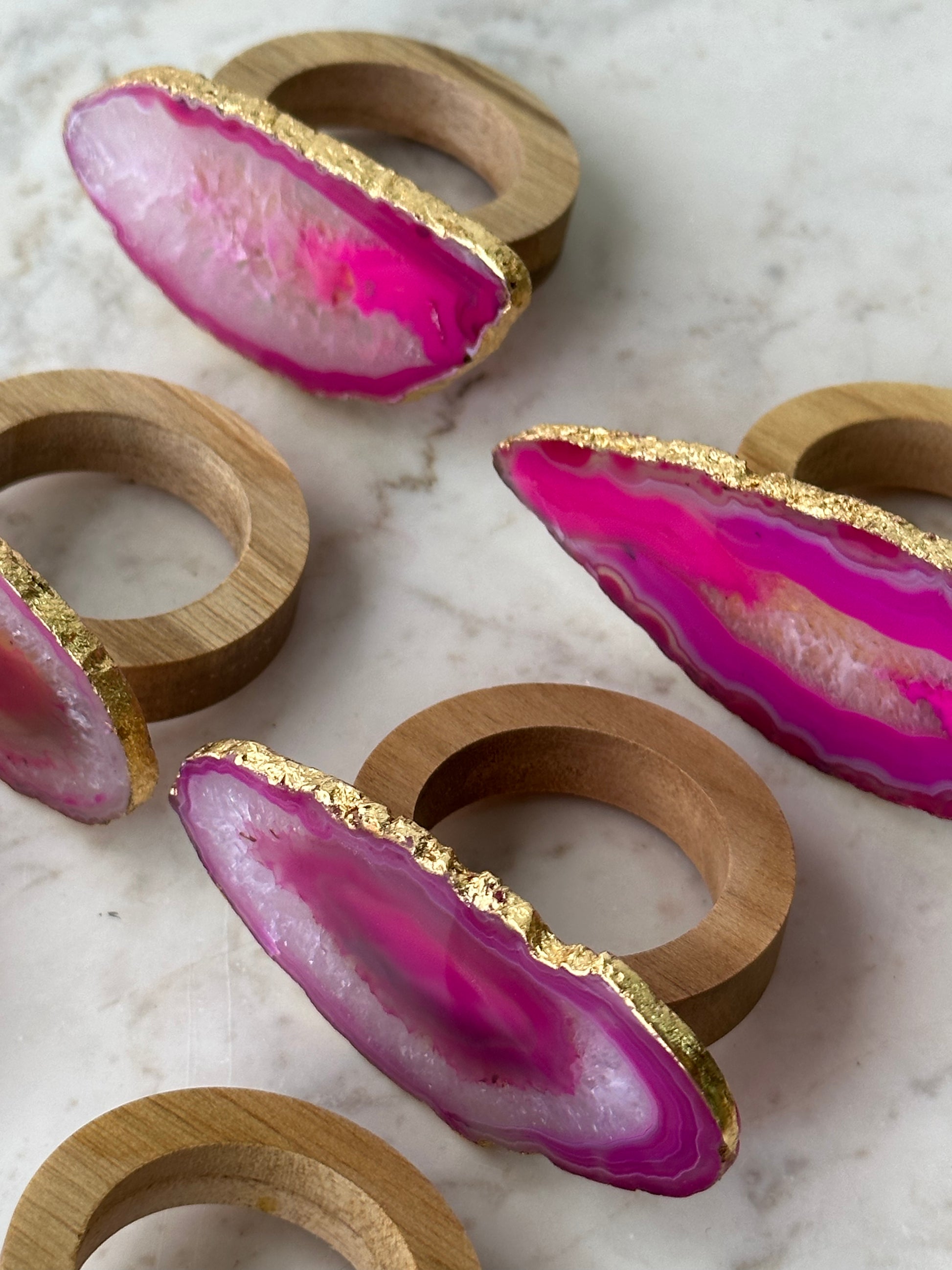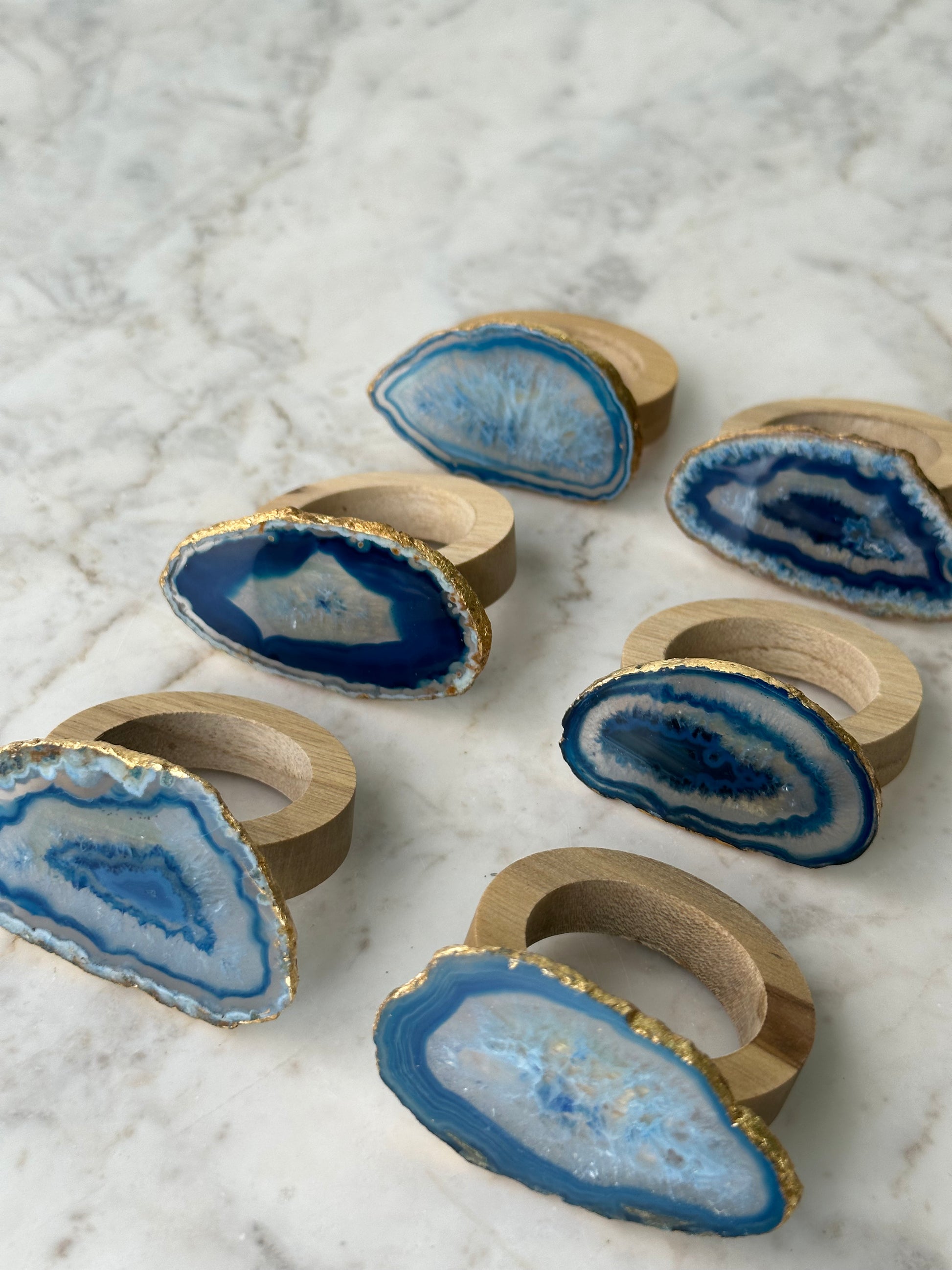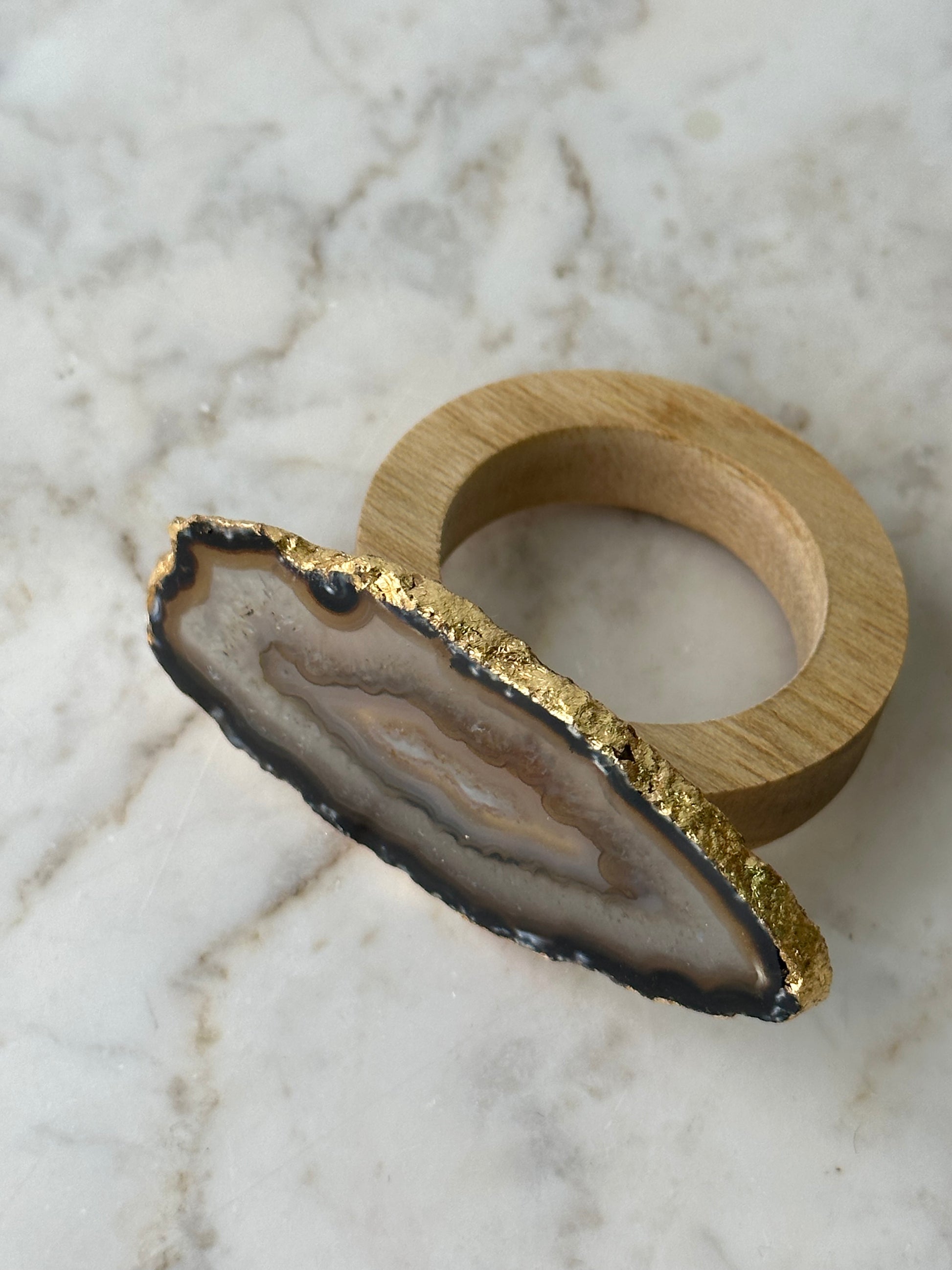 6 anéis para guardanapos com ágata, escolher cor, e a o acabamento é em folha de ouro