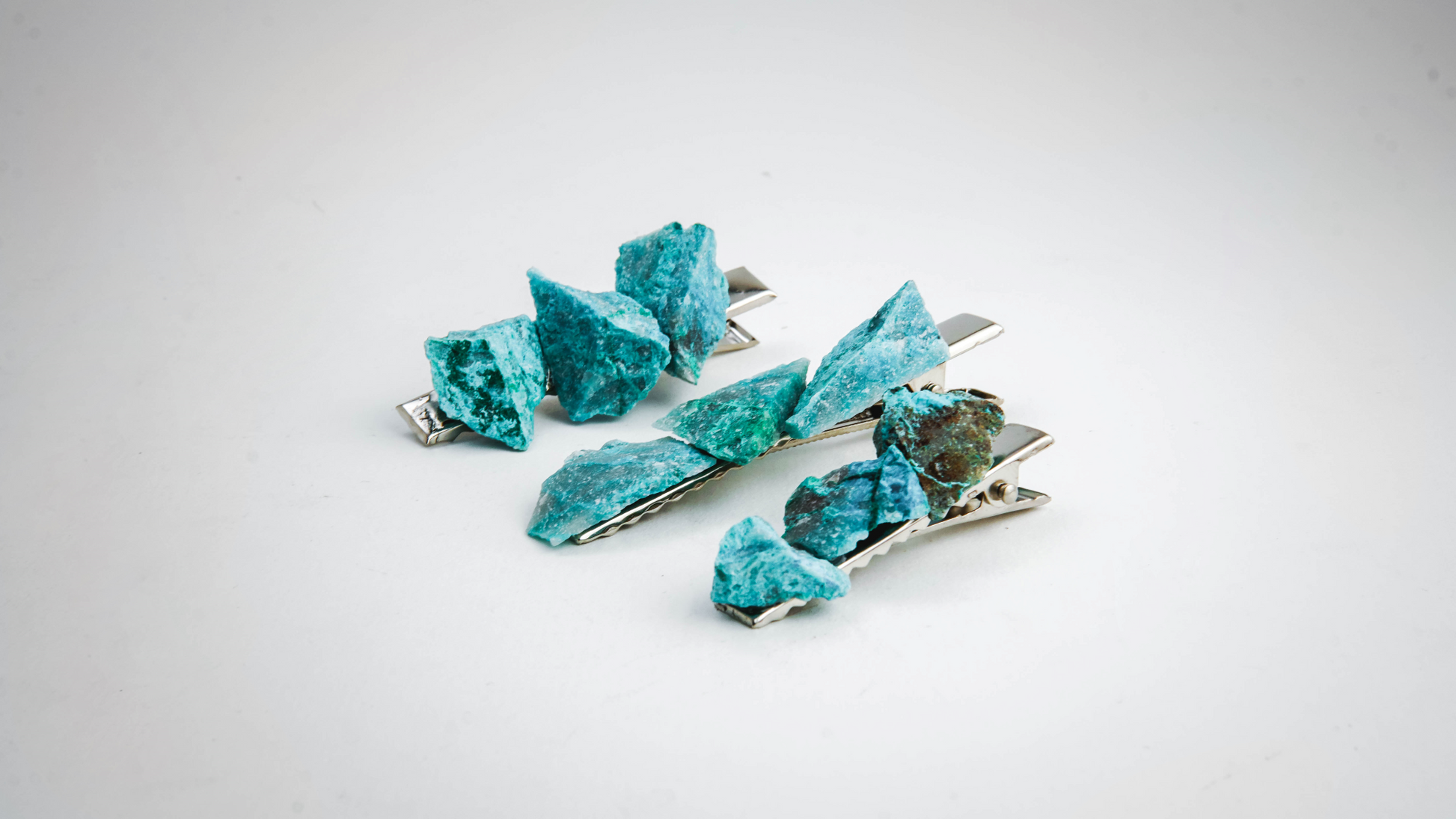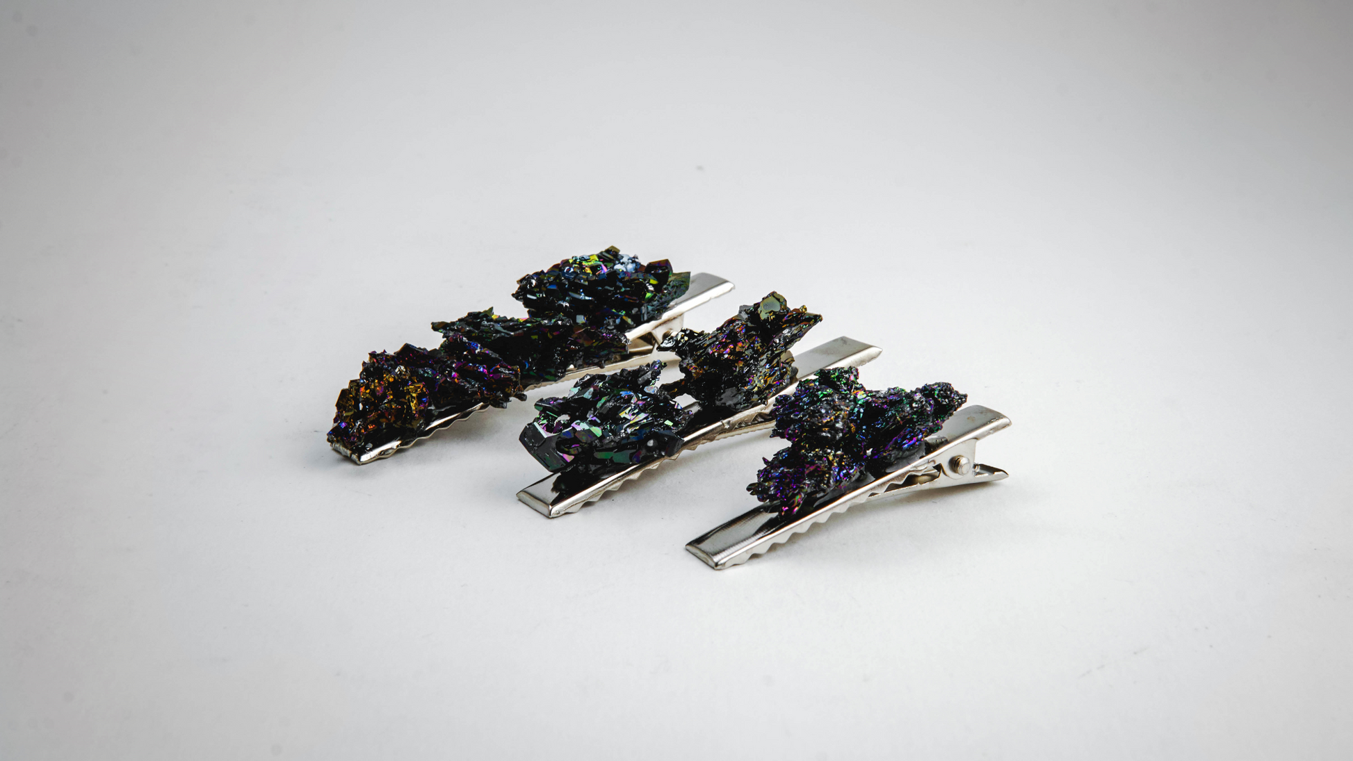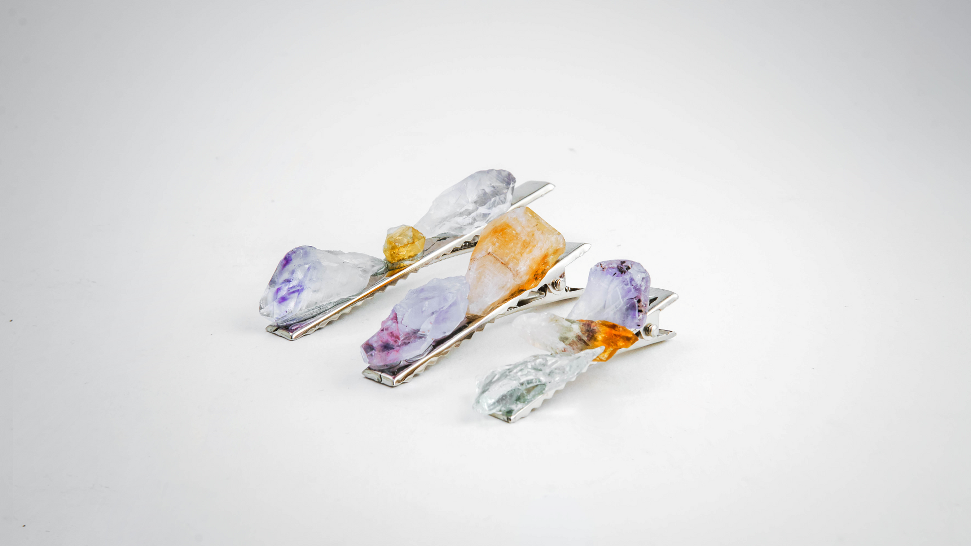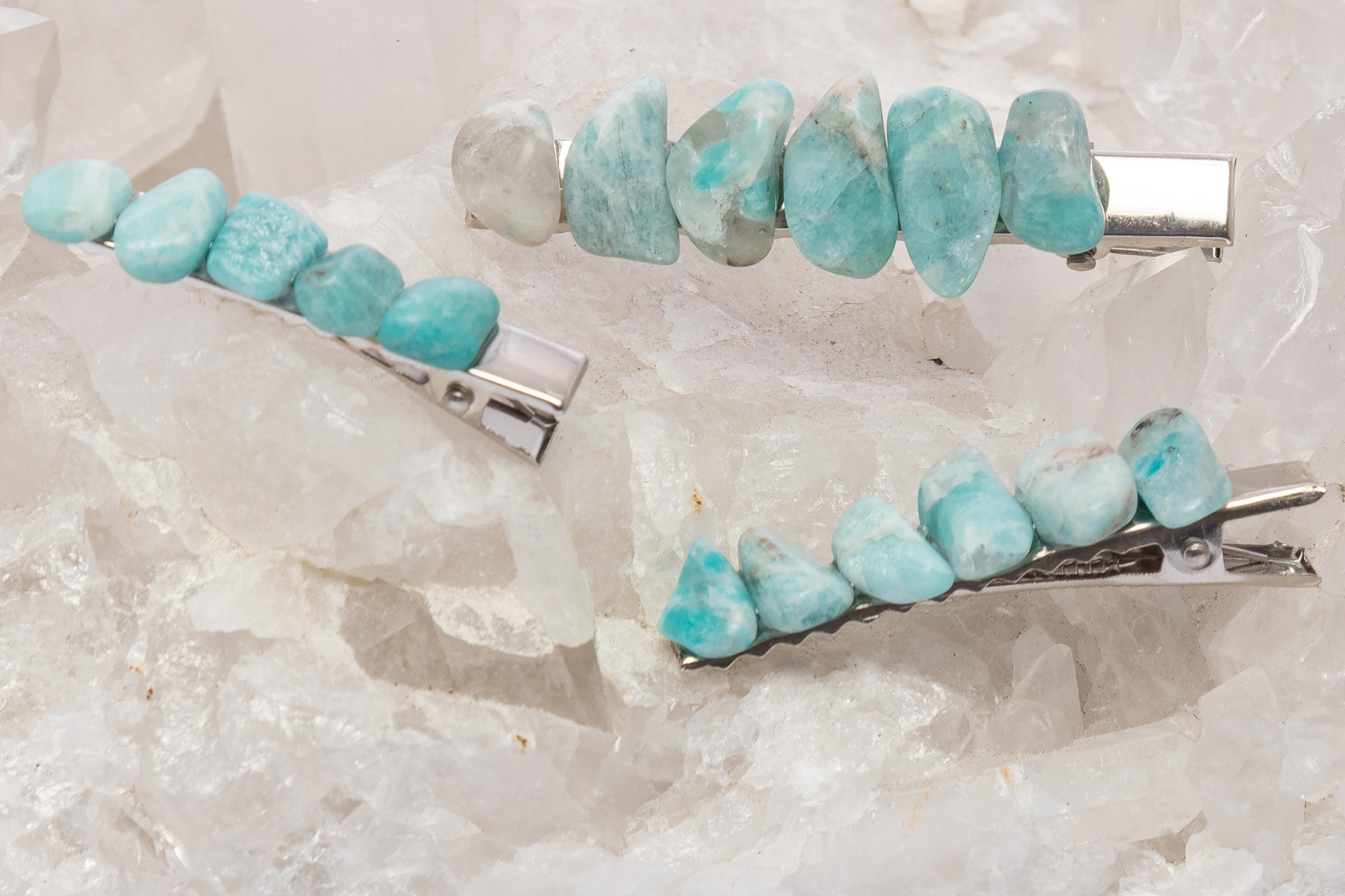 Presilha em metal com pedras naturais como ametista, pirita, citrino, amazonita, silício arco-íris, cianita preta, crisocola ou outra pedra natural. Uma peça sortida será encaminhada.